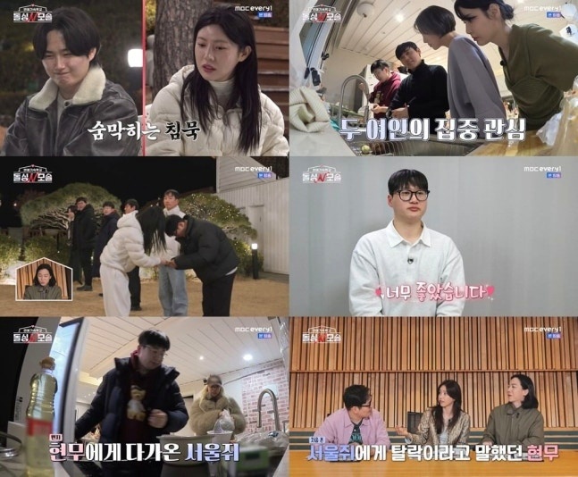 하지만 모든 게 잘 풀리지는 않았죠. 열심히 달걀찜을 만들며 어필했던 현무 씨와 역사 강의로 분위기를 장악했던 조지 씨는 0표 굴욕을 맛봤습니다. 현무 씨는 “패잔병이 돼서 집에 가고 싶다”며 씁쓸함을 감추지 못했는데요. 그런데 이때, 아이러니하게도 처음 만났을 때 현무 씨에게 ‘탈락’ 소리를 들었던 서울쥐 씨가 가장 먼저 다가와 현무 씨를 위로했습니다. 엇갈린 화살표 속에서 피어난 이 뜻밖의 따뜻한 위로가 또 다른 멜로 서사의 씨앗이 될 수 있을지, 다음 이야기가 정말 기대됩니다.