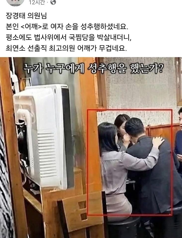 장경태 의원은 해당 의혹을 “명백한 허위”, “정치적 공격”이라고 규정하며 강하게 반발하고 있습니다. 특히 촬영된 영상에 대해 “편집된 자료로 오해를 유발하고 있다”고 주장했습니다.