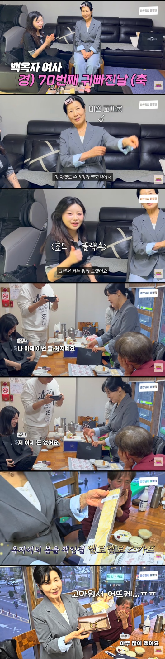 그런데 여기서 끝이 아니었어요. 이어지는 식사 자리에서 수빈 씨는 할머니를 위해 정성껏 준비한 또 다른 선물을 공개했습니다. 바로 명품 스카프와 명품 가방이었죠. 생각지도 못한 고가의 선물 세례에 백 여사는 “큰일 났네. 쟤 돈 너무 썼네”라며 걱정 섞인 기쁨을 표했습니다. 혹시 제 주변에도 이렇게 부모님께 통 큰 선물을 자주 하시는 분들이 계신데, 받을 때는 너무 좋지만 한편으론 ‘내가 이걸 받아도 되나?’ 하는 생각이 들기도 하더라고요. 하지만 그만큼 효도하고 싶은 마음이 크다는 뜻이겠죠.