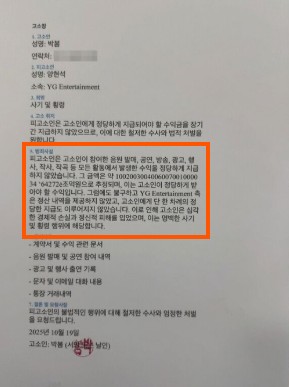 박봄, YG 상대로 ‘사기 및 횡령’ 고소장 공개
