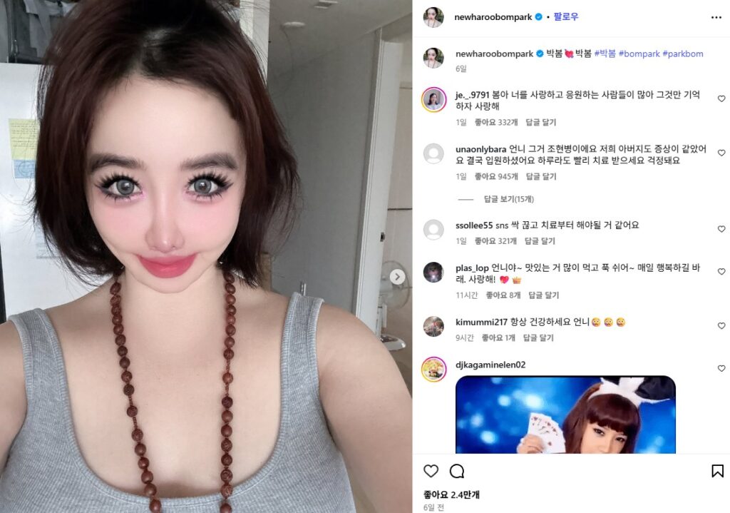 박봄은 최근 “우울증과 불안장애 치료를 꾸준히 받고 있다”고 직접 밝혔습니다. 그러나 잦은 감정 기복과 SNS에서의 돌발 행동은 여전히 팬들의 걱정을 사고 있습니다.